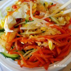 (1)将角瓜洗净,切成细丝;胡萝卜、黄瓜洗净,切成细丝;鸡蛋打散备用。